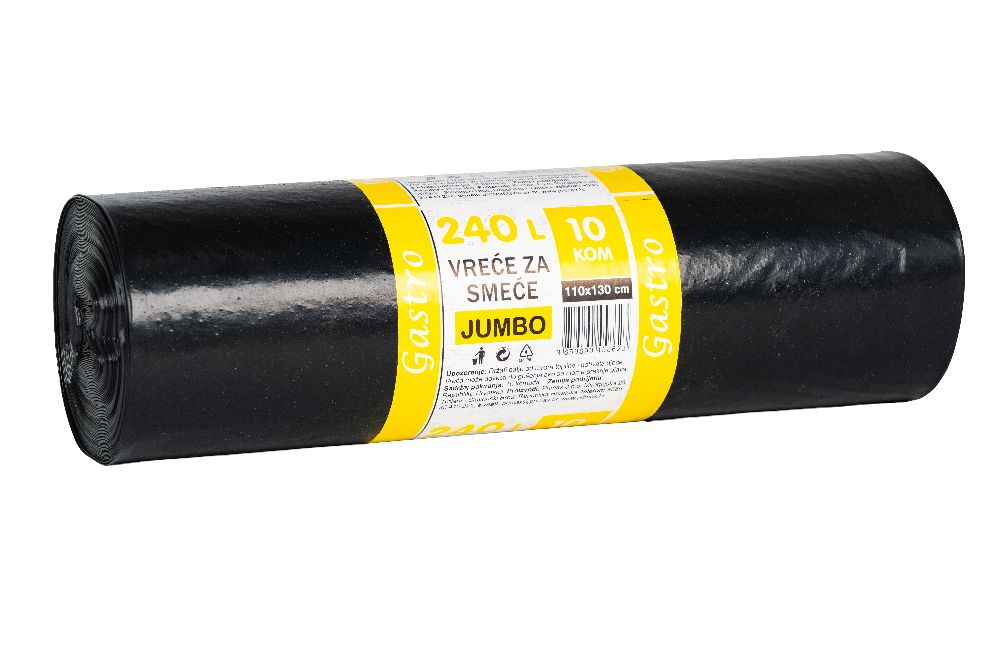 Prostrana i čvrsta vrećica za smeće od recikliranog LDPE, bez vezice za zatvaranje.